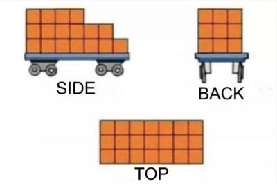 На картинката виждате камион, който превозва няколко кубчета. Но колко точно са кубчетата, не е ясно.
